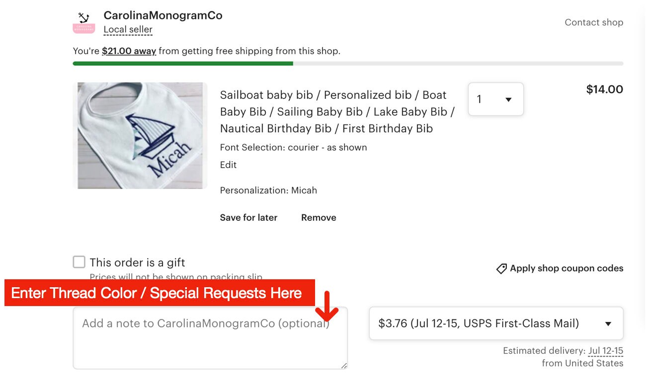 Please specify in Notes to Seller: